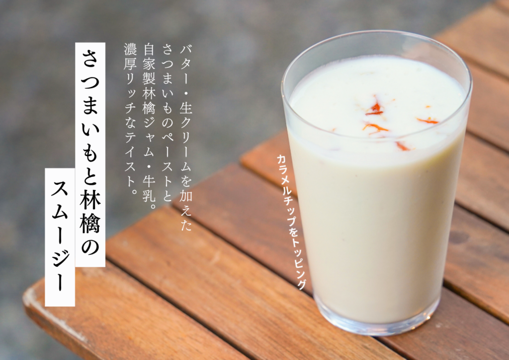 さつまいもを蒸し、バターや生クリーム、シナモンなどを加えて滑らかなペースト状にし、林檎ジャムとMIX。濃厚でとろける滑らかさと、すっきりとした甘さは、まるで”飲むスイートポテト”。